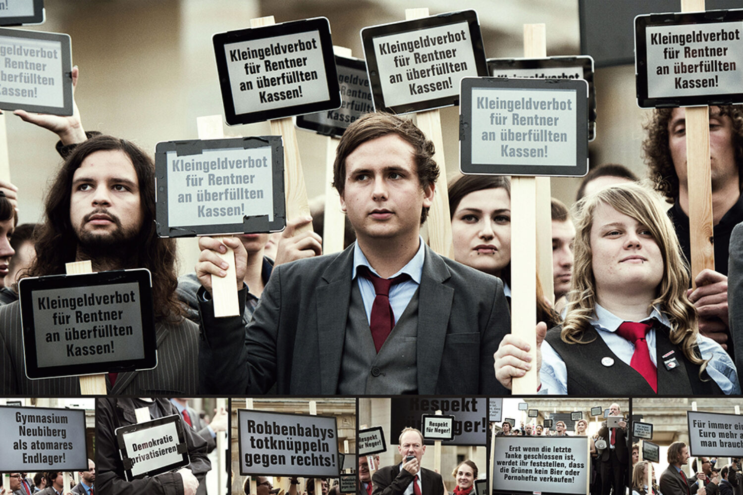 With the aim of taking an attentiongrabbing stand against major parties in the Federal Election Campaign of 2013 in Germany, the iDemo was developed as an original and media-savvy PR stunt. It realised the idea of the first interactive demonstration where a party demanded exactly what their voters wanted. People could submit their claims online using a microsite and social networks. Their demands were then uploaded live onto the digital screens at the actual demonstration, in front of the historic Brandenburg Gate in the government district of Berlin.